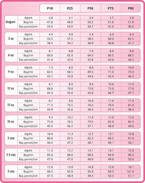 Erkek bebeklerin gelişim tablosu için TIKLAYIN.