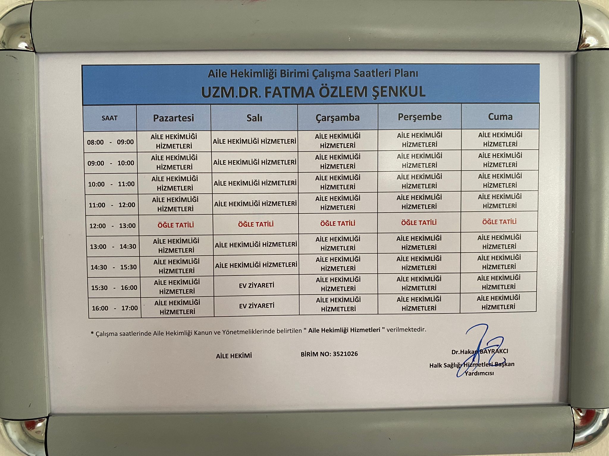 Aile Hekimi: Uzm.Dr. Fatma Özlem ŞENKUL
